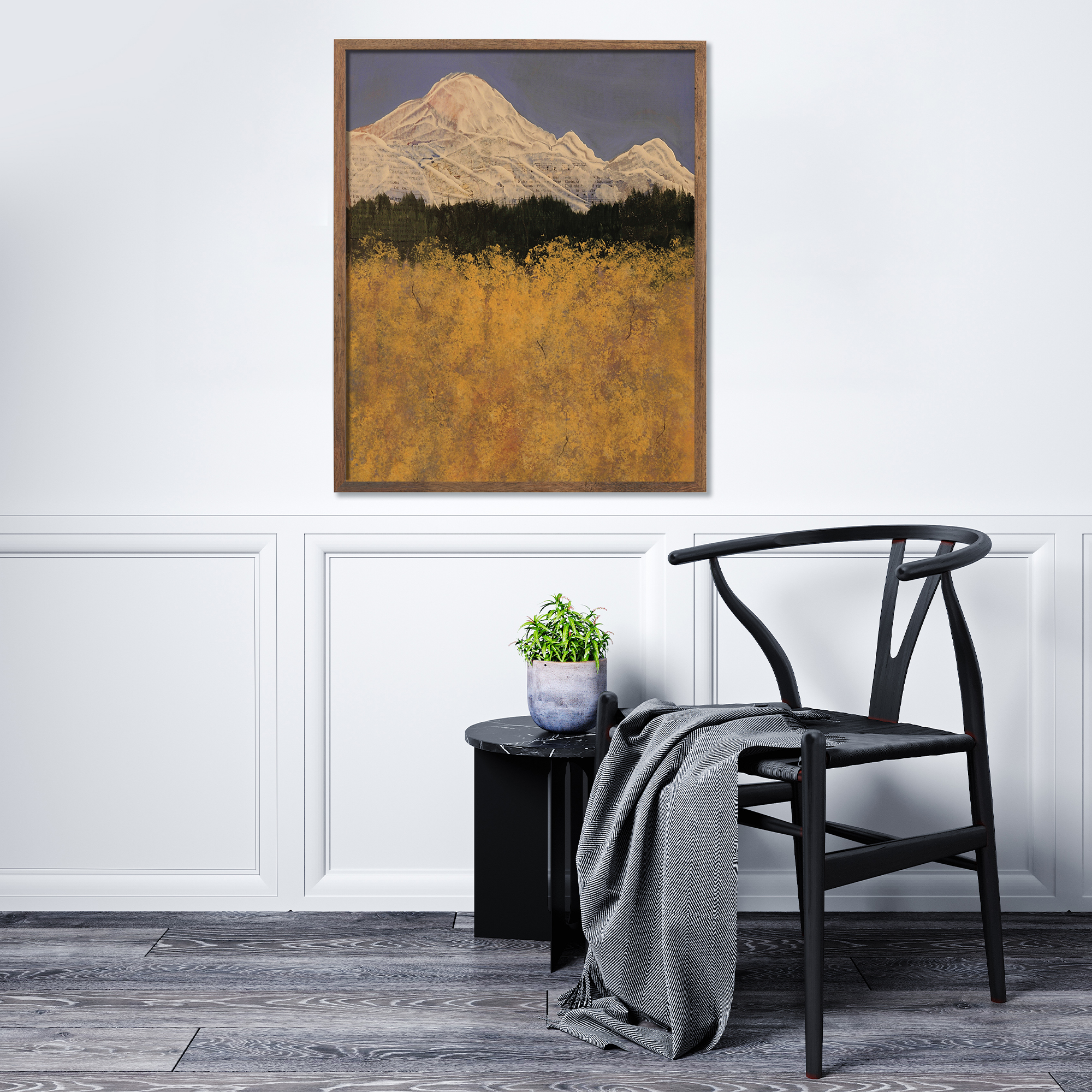 Frames are solid wood in four finishes: black oak, walnut stained oak, natural oak, and white oak. All four are clean, contemporary profiles that let the artwork lead. If you'd like to request another frame color or style, please reach out for a custom quote.